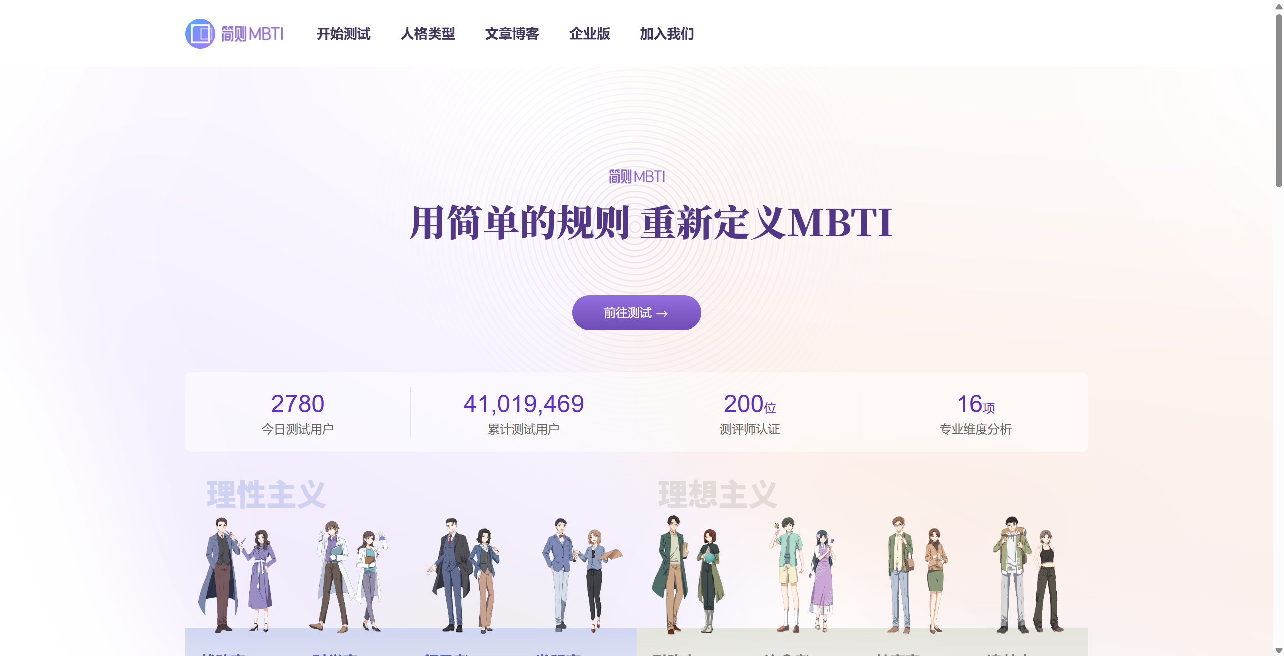 简则MBTI是一个专研MBTI测试的平台,有着4种不同的MBTI测试,这四种测试是有MBTI-G和MBTI-M量表进行本土化的。